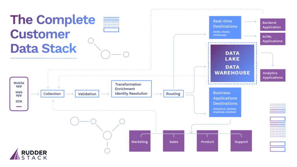 You can also ingest data from cloud application sources (like Customer.io) and BI tools (like Looker). You can route ingested data to more than 60 destinations, including real-time/streaming destinations like Apache Kafka and Amazon Kinesis, warehouses like Google BigQuery and Snowflake and ML tools like AWS Personalize (not to mention cloud tools like Amplitude, ZenDesk and AppsFlyer).