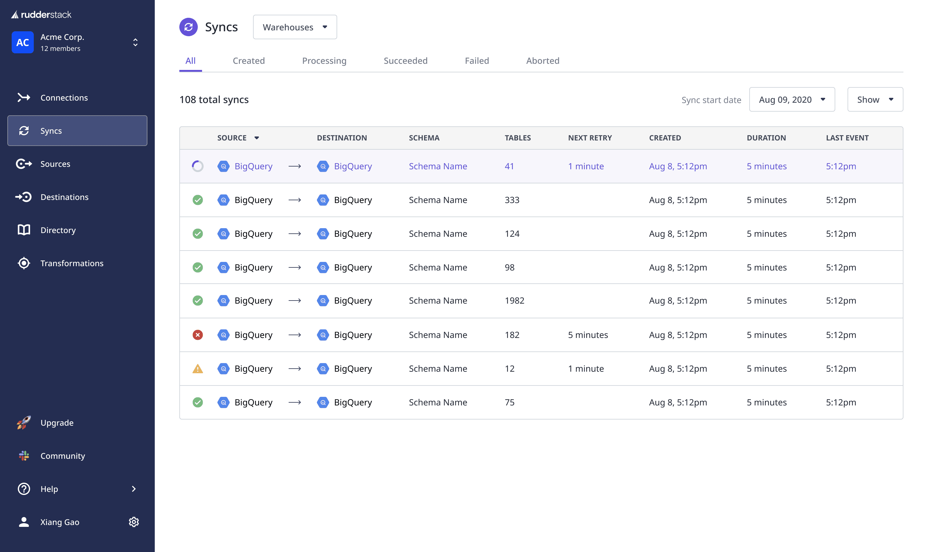 In addition to warehouse destination syncs, we now provide sync details for Reverse ETL when you send data from your warehouse to downstream destinations.