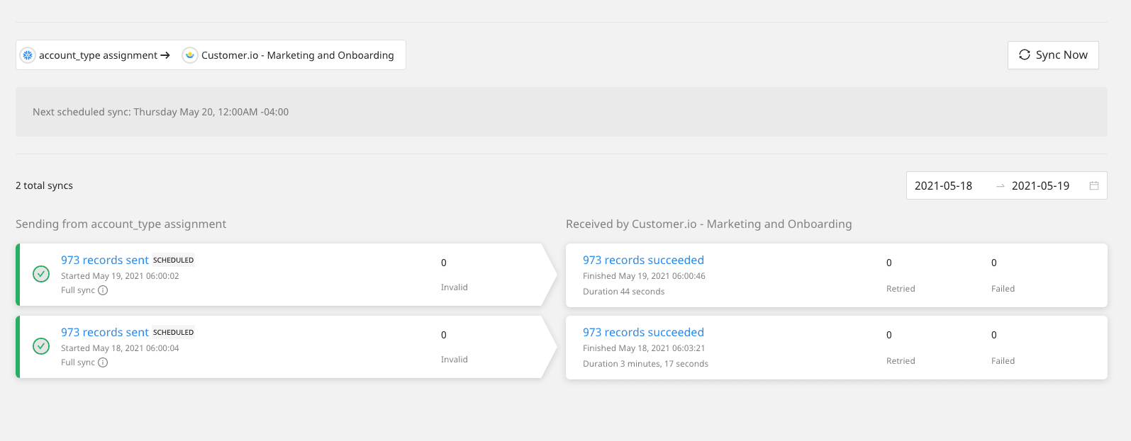 Reverse ETL Sync History & Detail