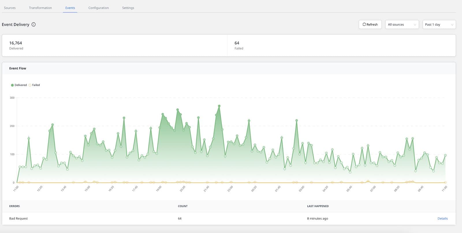 We now offer event volume on a per-destination basis. In the destination UI, we let users see errors up to the last 30 days.