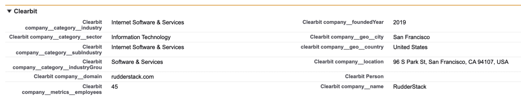 Like a lot of companies, we use Salesforce as a CRM. In fact, our Salesforce integration is one of our most popular destinations, but most people don’t typically use it as a source for streaming event data. We also use Clearbit for lead enrichment and have published a user transformation in our git library that we routinely call prior to sending new leads into Salesforce.