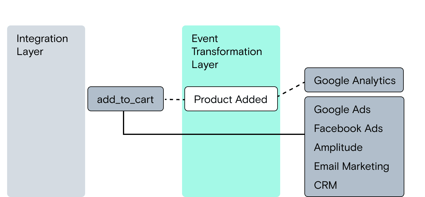 Ok, so we’ve solved for data consistency at the source, but the entire goal of a unified data layer is to make sure all of the downstream tools have the same copy of events and user records. On face value, these single-format payloads are problematic because the APIs for downstream destinations are unique—that’s why you had to run multiple scripts from multiple platforms in the first place.