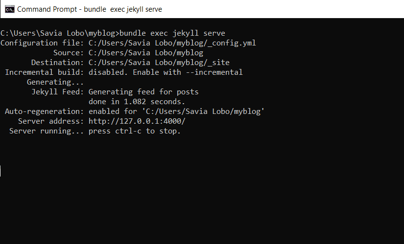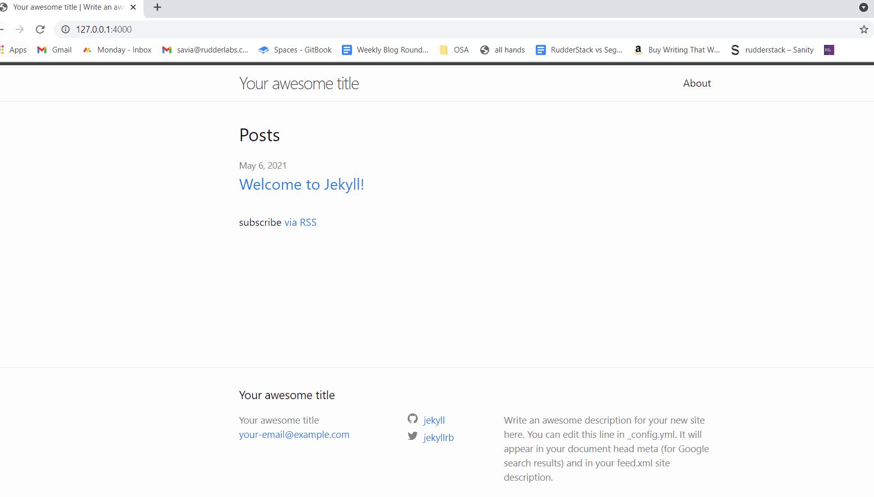 3. Open your Jekyll site by visiting the server address mentioned in the cmd or http://localhost:4000 on your browser.