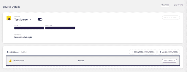 7. Voila! Google Analytics is now configured as a destination. You should now see the following source-destination connection in your dashboard: