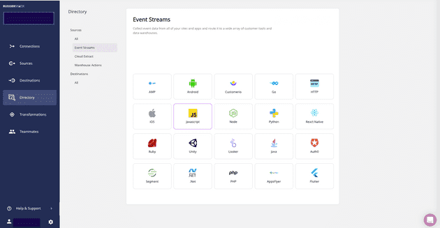 Test out our event stream, ELT, and reverse-ETL pipelines. Use our HTTP source to send data in less than 5 minutes, or install one of our 12 SDKs in your website or app.