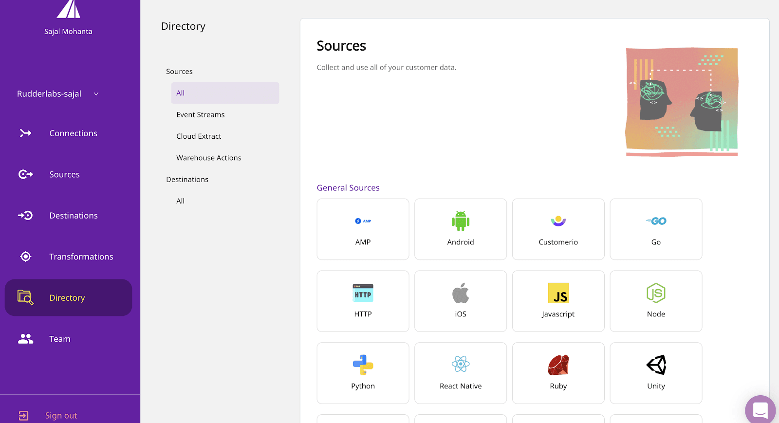 Now, you can connect your source to your preferred destination to route your customer data from the Six Simple Steps to Adding New Destinations.