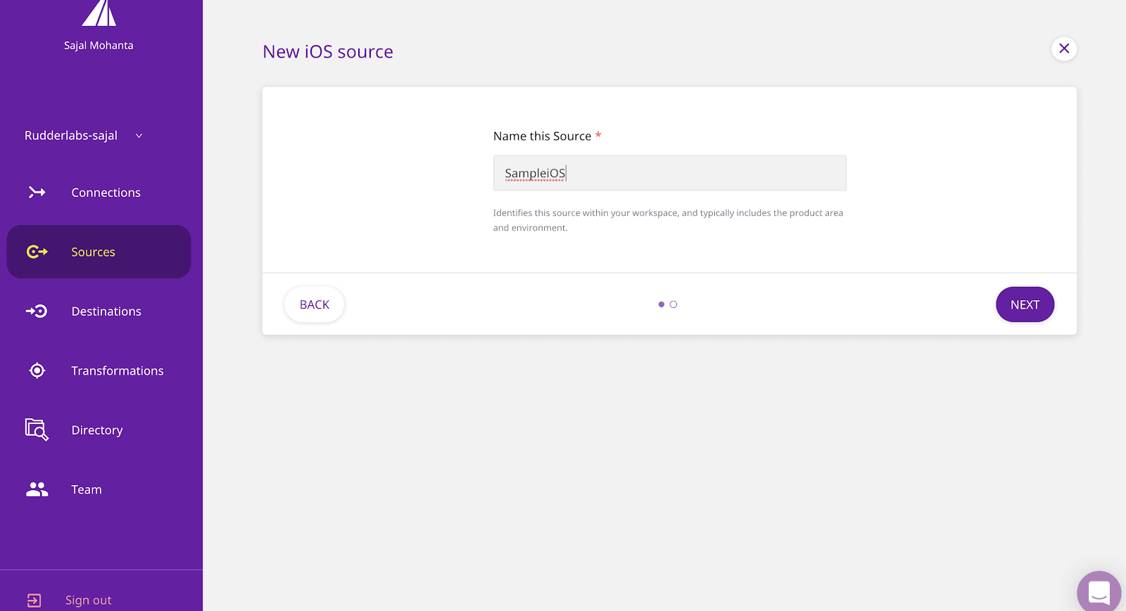 - Step 1: Log into your RudderStack workspace and click on ADD SOURCE. This option appears on the Connections home page or the Sources list.