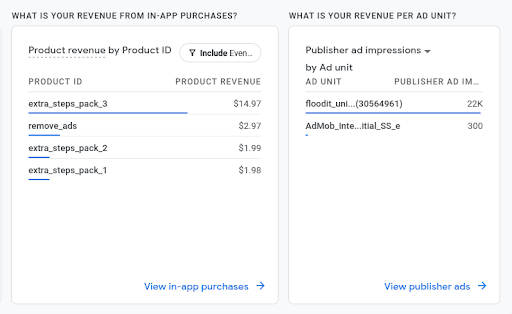 For even more detailed reports, check out the reports in "eCommerce purchases." You can find the link for this next to the link for the "Monetization overview" reports.