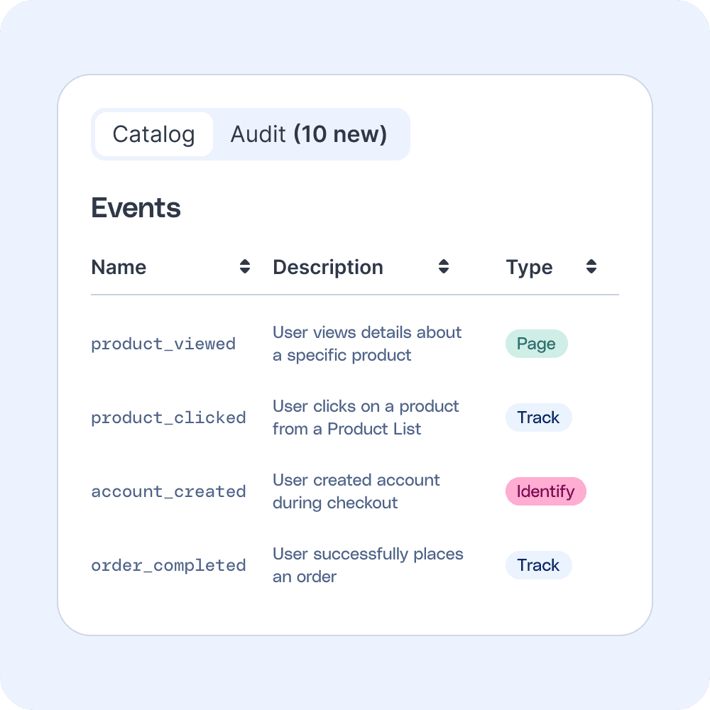 Centrally define and maintain up-to-date event definitions to enable company-wide alignment through an event catalog.