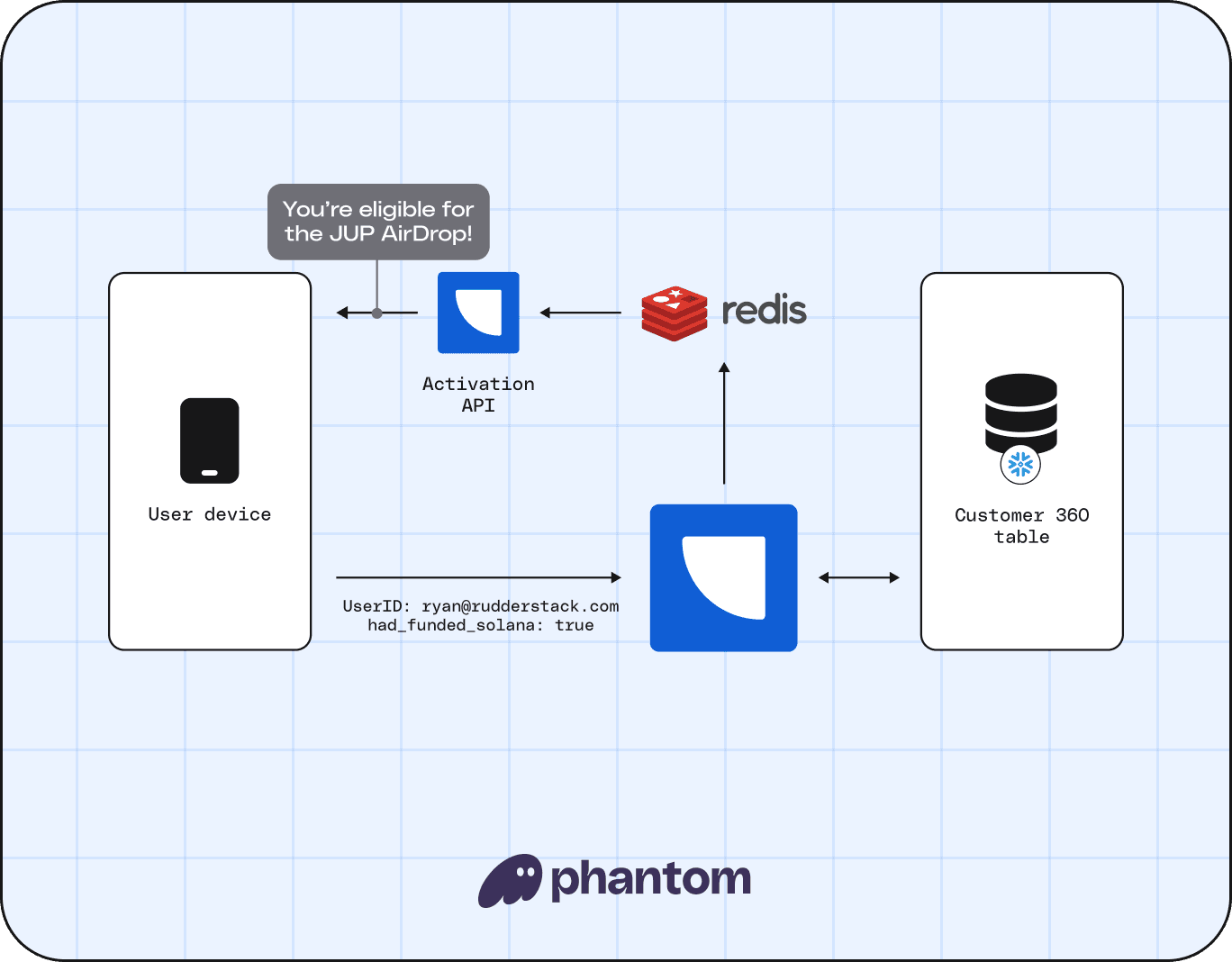 Combine complete customer profiles with RudderStack’s suite of activation options, and you can move beyond basic personalization to begin executing sophisticated campaigns in real-time, just like Phantom – a multichain crypto and NFT wallet – did with their JUP token Airdrop campaign.