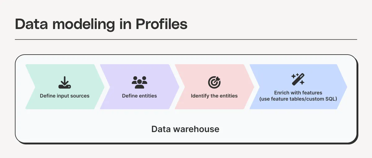 Profiles delivers a workflow that simplifies Customer 360 data modeling through elegant abstraction, and it gives you the tools you need to power use cases for every team.
