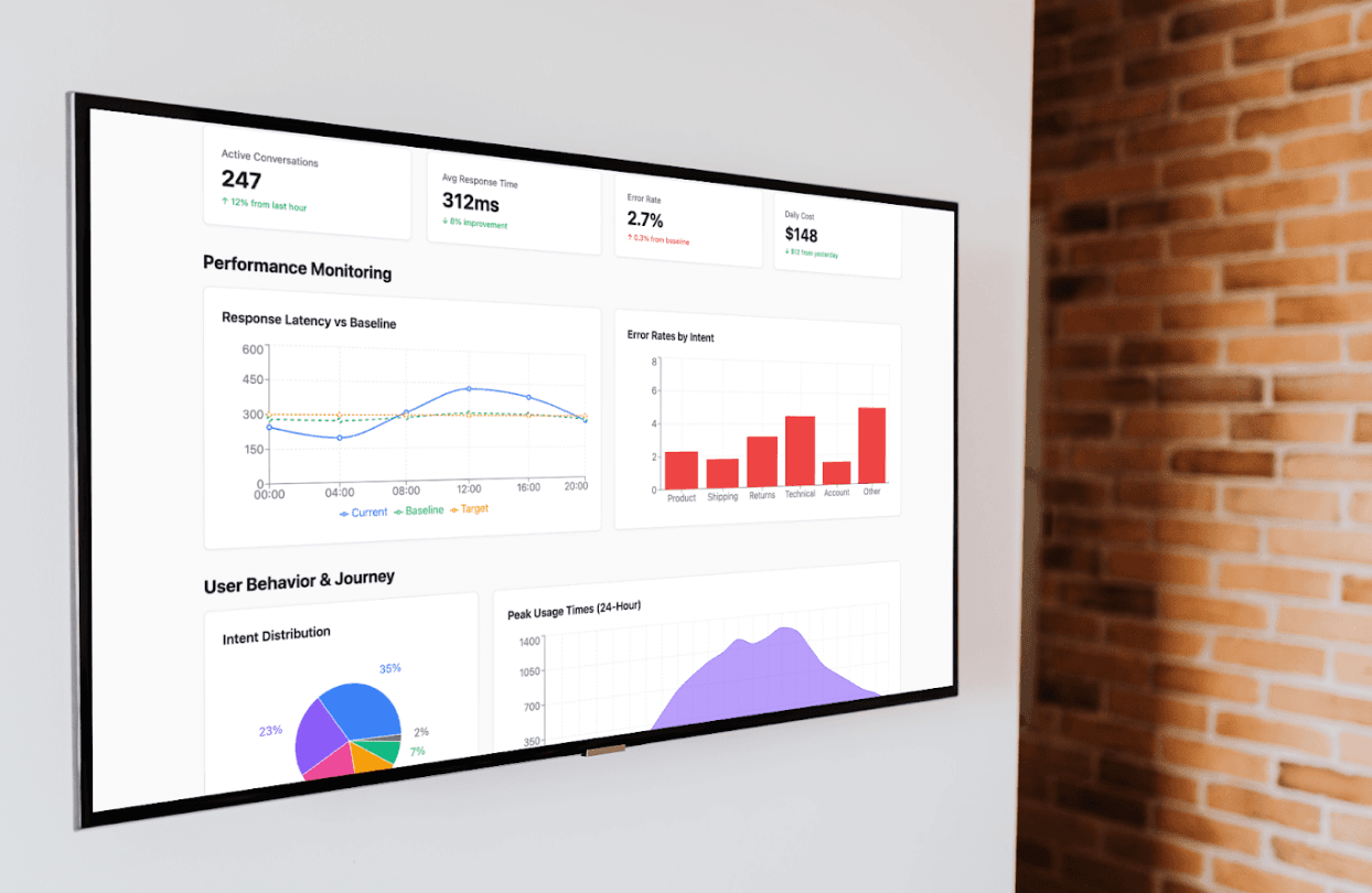 For real-time monitoring, build dashboards that track active conversations, response latency compared to historical baselines, and error rates broken down by model. This helps you quickly identify and respond to performance issues as they happen.