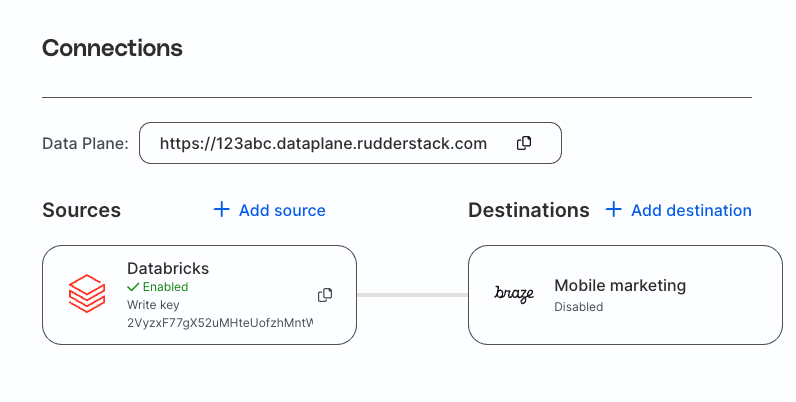 You can start sending data from Databricks to any of RudderStack’s 200+ destination integrations in a few simple steps. Log in to your RudderStack account, create a new source, select “Databricks,” and enter your Databricks credentials.