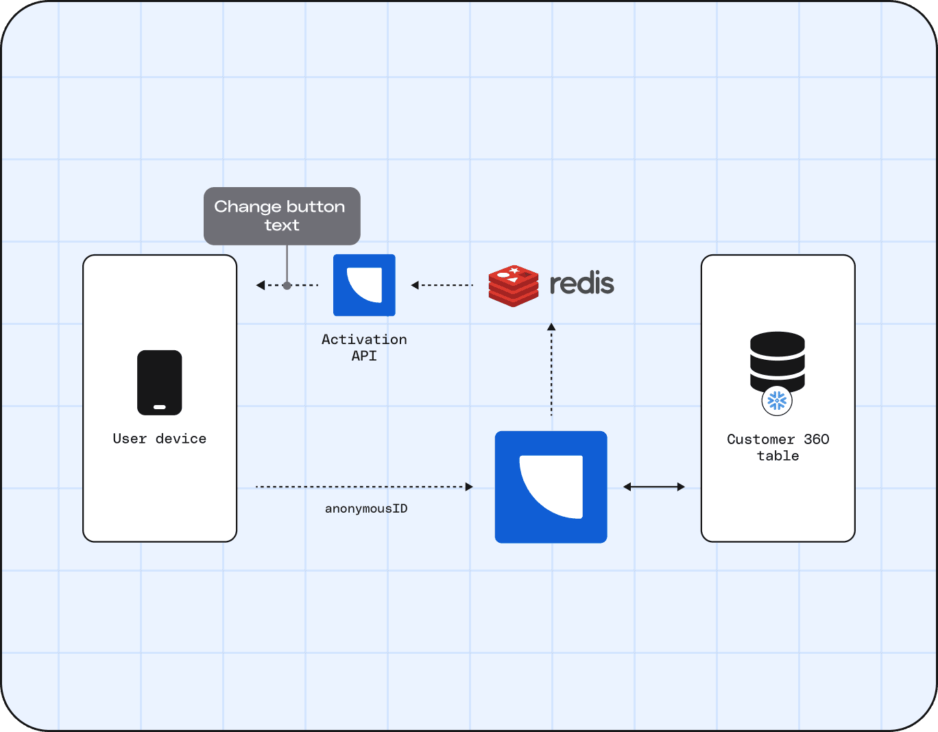 At this point, our data engineer handed off the API endpoint and credentials to our frontend engineering team. Using Vercel middleware, they were able to grab the user’s anonymousId, pass it to the Activation API, pull down user signup status, and change the frontend—almost instantaneously.