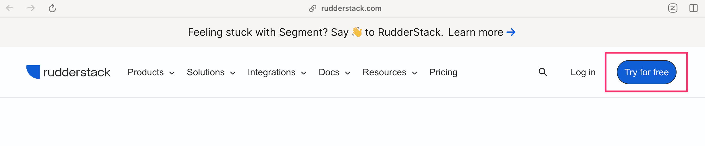 - Users who haven’t signed up for RudderStack see a ‘Try for free’ CTA as the primary button in the header