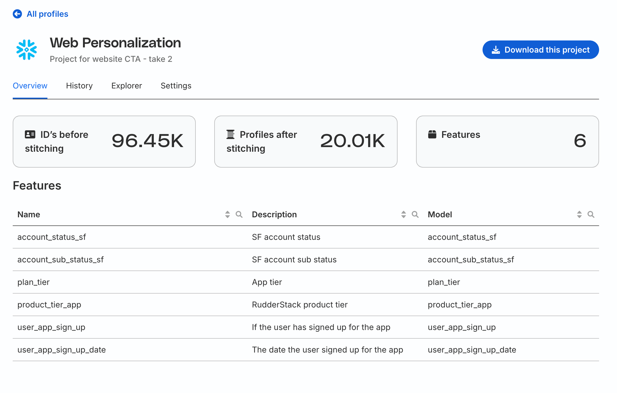 Even though our primary Profiles project already had all of the traits the business needed as part of the customer 360 table, it would have been heavy-handed (and costly) to sync the entire data set for such a specific use case.