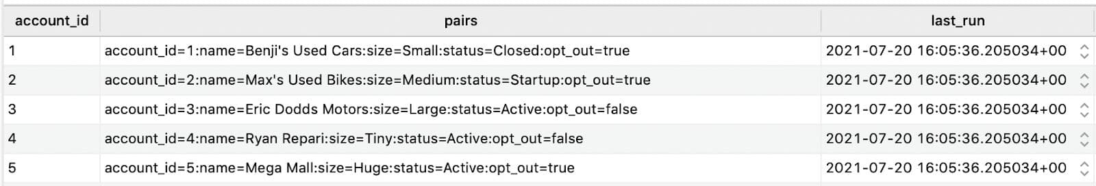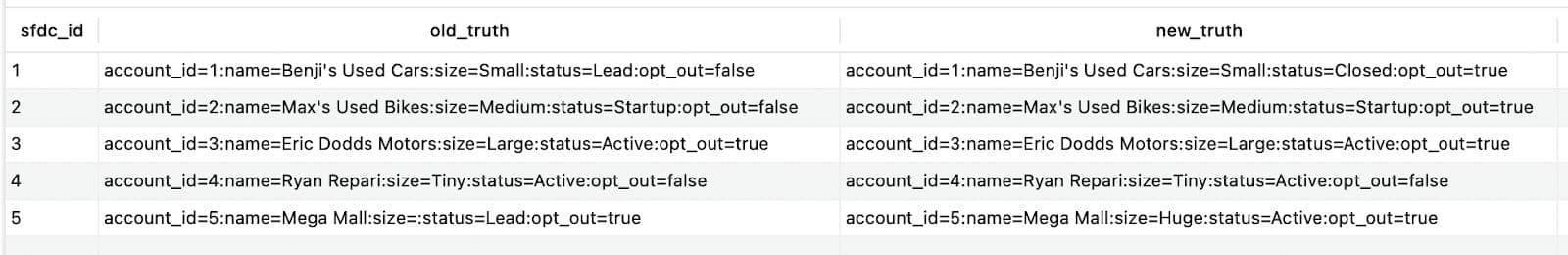 The examples we just walked through assumed you would always have the same number of columns in your underlying source table. For some organizations, this won’t always be the case. For example, if your sales team has added an additional field to the Salesforce Account, and they want that value propagated to all of the other tools in your org, it would involve a nontrivial amount of analytics engineering time to make sure the property is propagated throughout all of the tools. In addition, each new field added would force a complete pass given the logic in our dbt model above. Lastly, it would require remapping all of the individual Reverse ETL like the one we set up.