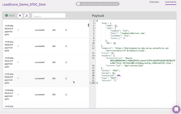 After your data has been synced, you can view the results by clicking on the “Live Events” option in the upper-right corner.