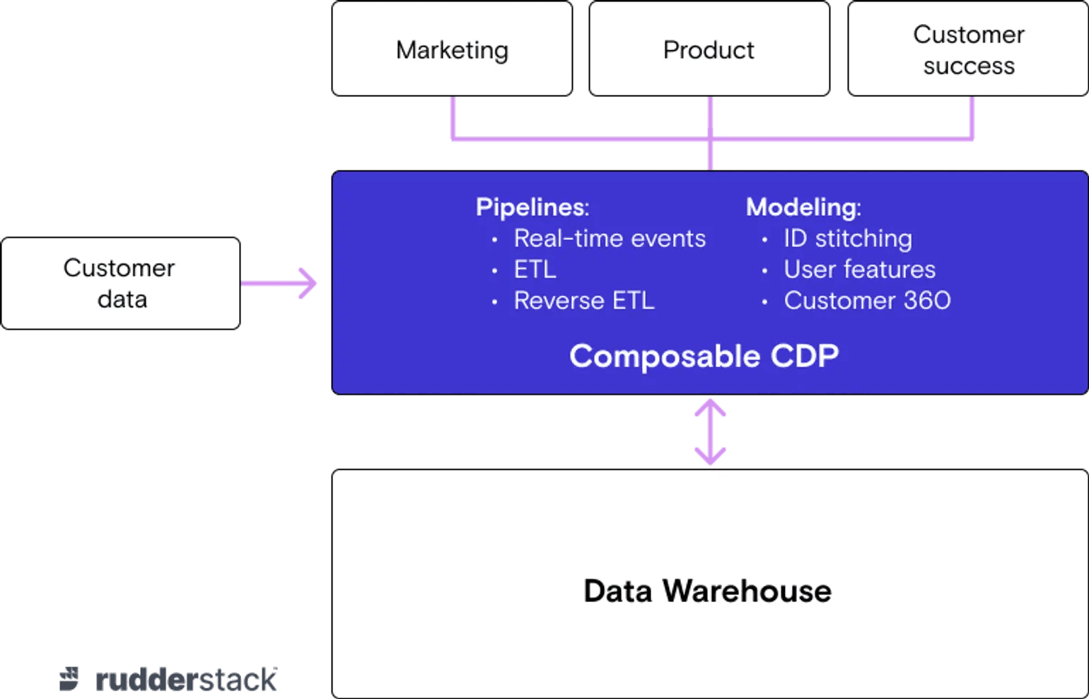 While existing data warehouses and data lakes (e.g. Snowflake, Amazon Redshift, and Databricks Delta Lake) are producing business tools that are better than ever at addressing the problems with legacy data management, composable CDP architecture provides a robust layer that solidifies the connection between the modern data and business stacks. With its warehouse-native architecture, RudderStack simplifies the collection, unification, and activation of customer data.