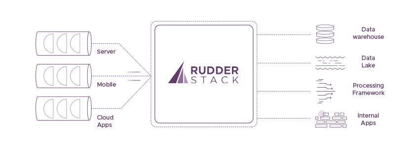 - The data plane: This is where all the magic happens. RudderStack pushes data from clients to the data plane, which is responsible for handling it. Schema mapping, processing, filtering, and routing of events are happening at this part.