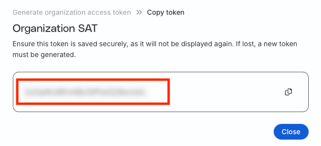 Organization-level SATs are associated with the entire organization and have Admin permissions by default.