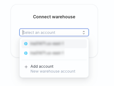 In the Connect warehouse section, select the warehouse connection from the list of available connections. If there is no warehouse connection available, click Add account to create a new connection.