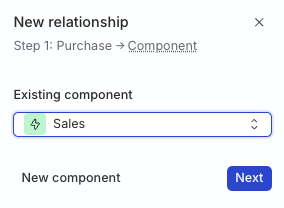 In the relationship configuration view, select one of the existing models — you can also create a new model. Then, click Next.