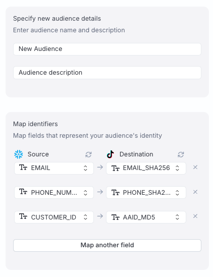 In this section, you can map your warehouse columns to specific TikTok fields that represent your audience’s identity.