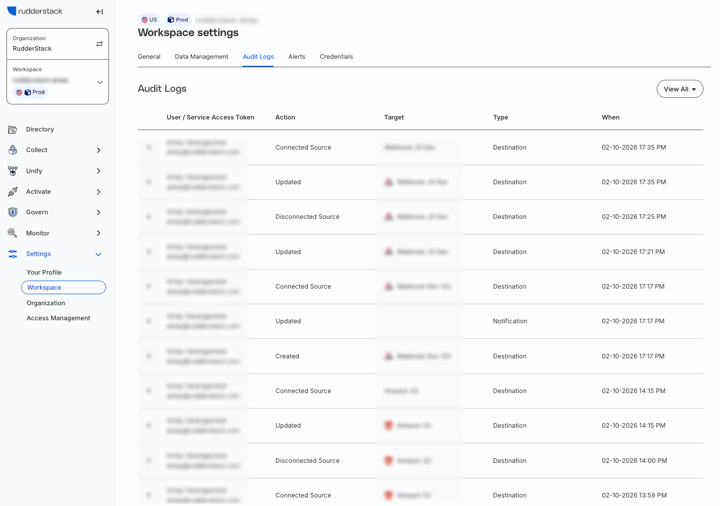 Track user activities in your RudderStack workspace.