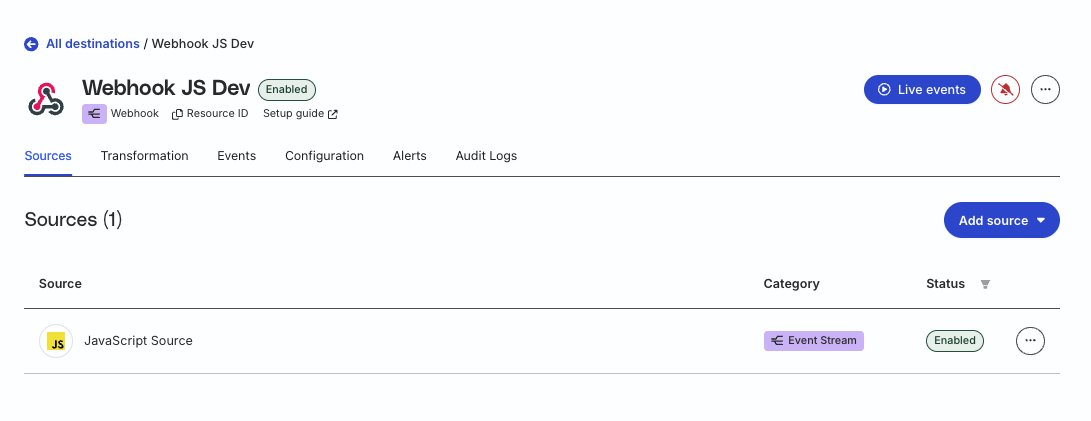 You can filter these metrics by source and duration (past 2 hours, 1 day, 7 days, or 30 days). RudderStack also shows you the event delivery and latency trends in this view along with details on delivery failures.
