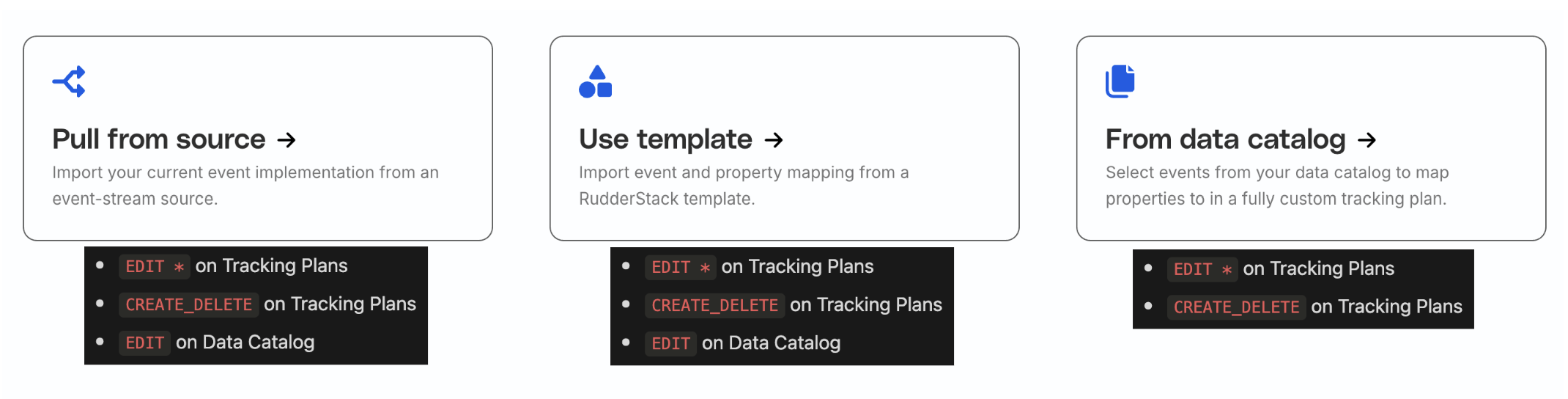 You can create a Tracking Plan from an existing event data source. This option leverages the Event Audit API to import the events and properties tracked by the event data source and generates an initial plan.