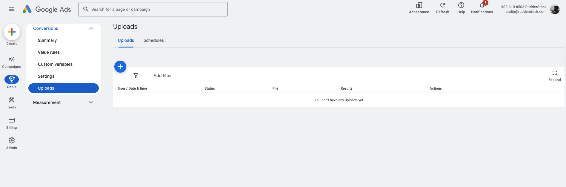 Send events to Google Ads Offline Conversions in RudderStack cloud mode.