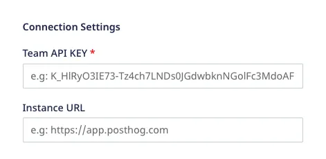 • Team API Key: Enter your PostHog team API key. This is a mandatory field. For more information on obtaining your PostHog Team API Key, refer to the FAQ section below.