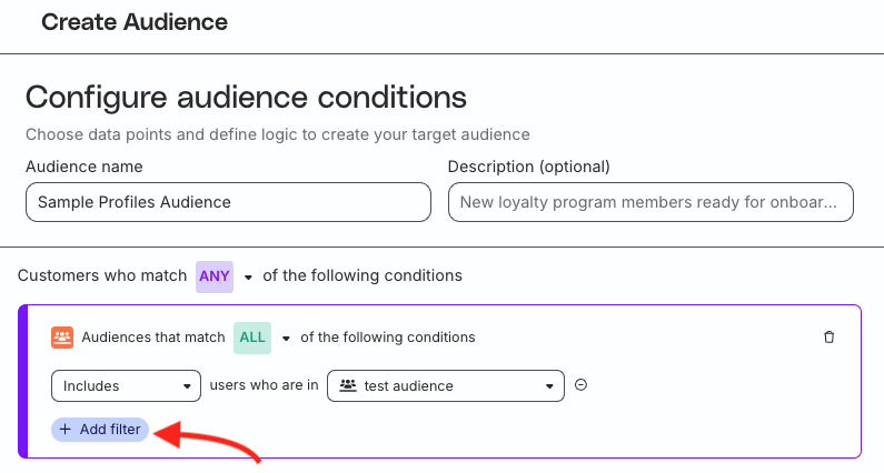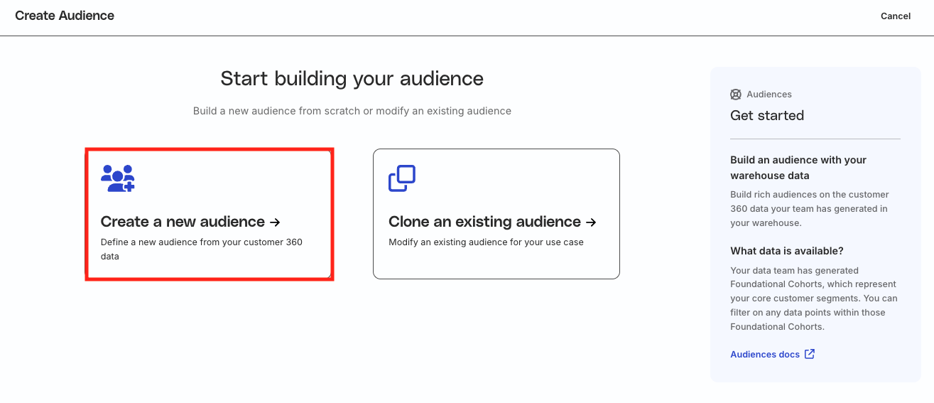 Make sure Cohorts are already set up in your Profiles project, as they act as the foundation to create audiences.