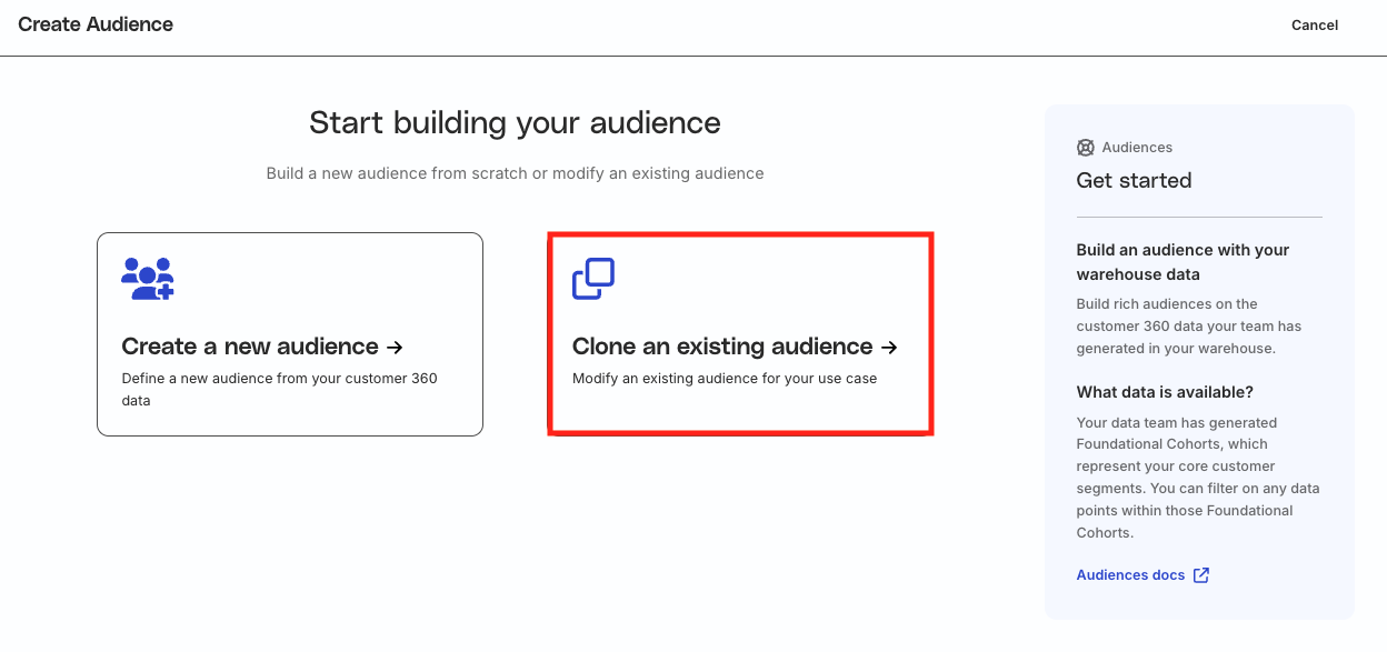 Works with foundational cohorts — pre-built customer segments created by your data team.