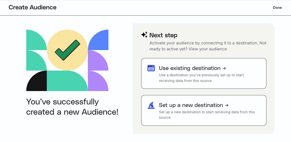To connect the audience to a destination at a later stage, click Done on the top right corner.