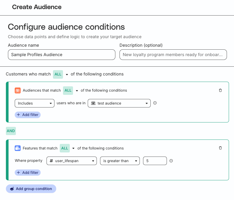 The Profiles Audiences feature is built to help Marketing teams create and activate audiences independently without any technical bottlenecks. It also helps Data teams maintain control over data quality and definitions while empowering their Marketing team.