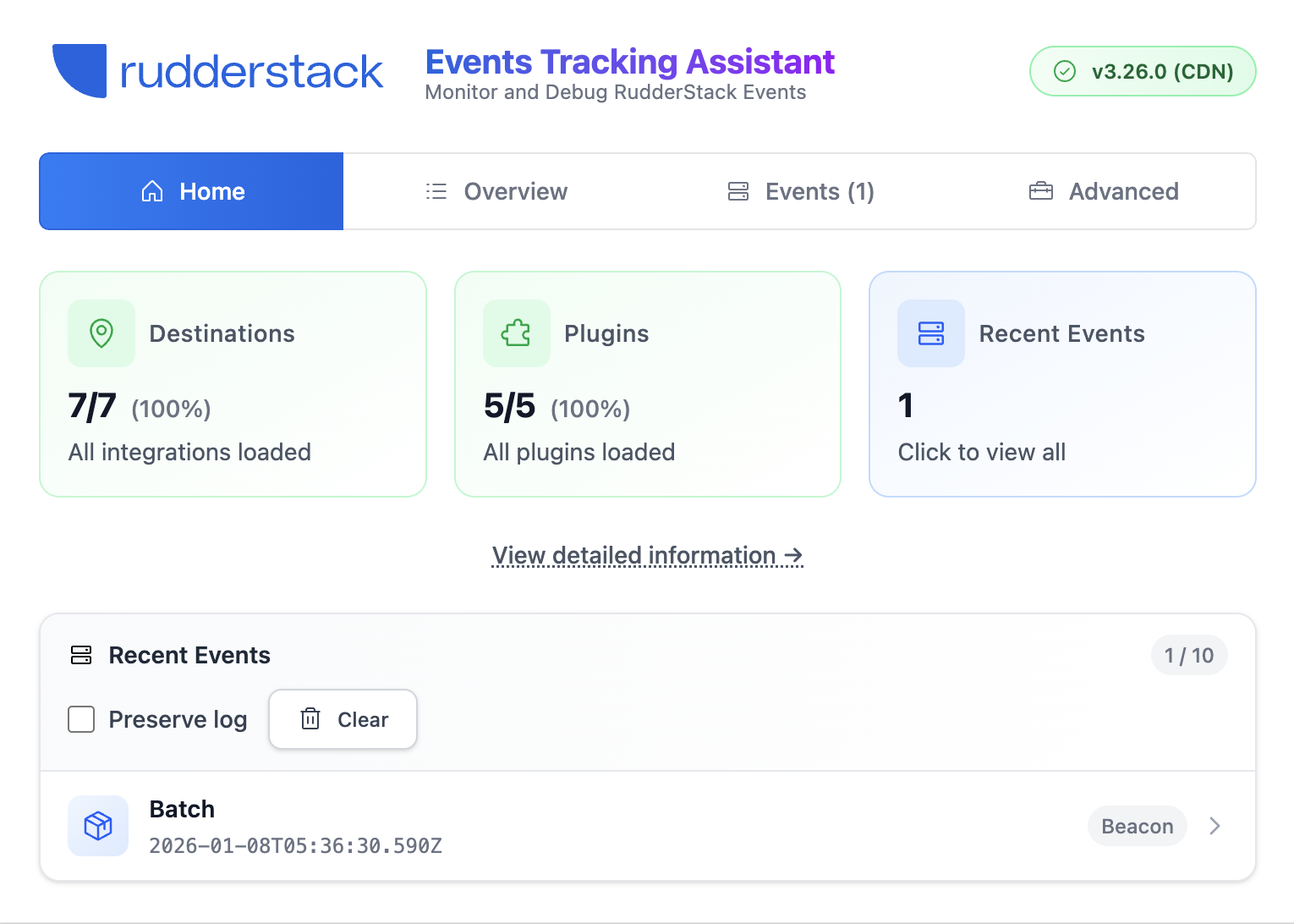 No. All data stays local in your browser. The extension only monitors RudderStack SDK activity and does not send any data to external servers.