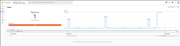7. Finally, check if the events are delivered to your Google Analytics destination. Go to your Google Analytics dashboard and navigate to the Realtime > Events option.