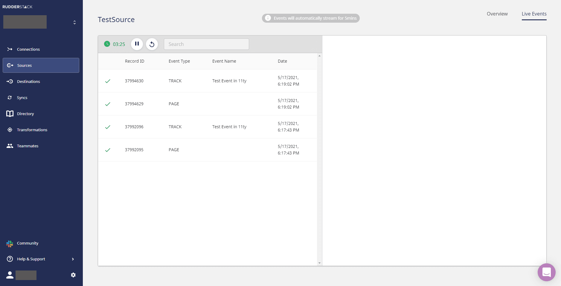 6. Brilliant! RudderStack has successfully tracked and captured the events: