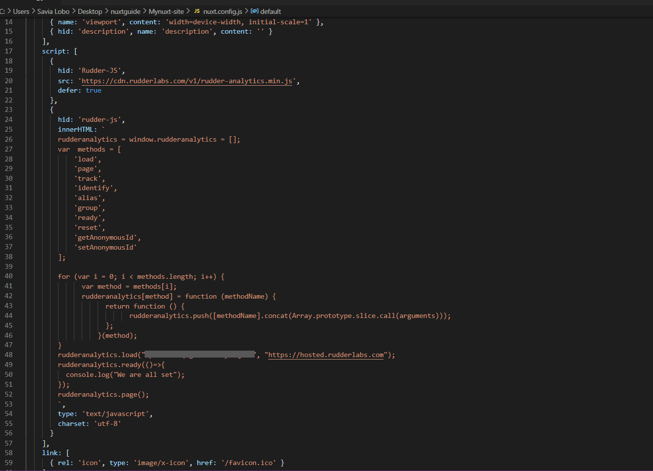 Step 1: Integrating Your Nuxt.js app with RudderStack JavaScript SDK