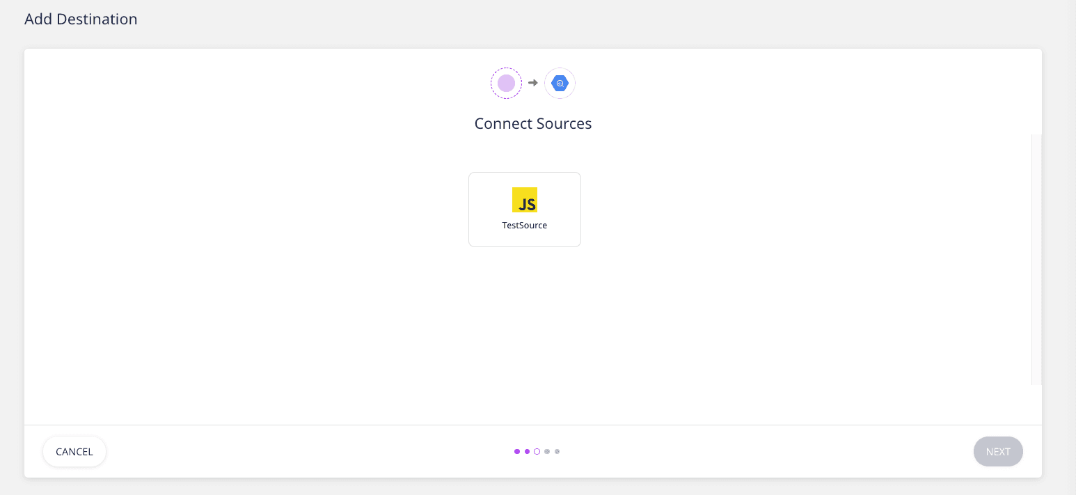 3. Choose the source from which you want to send the events. We will select the JavaScript source associated with our Gatsby website for this destination.