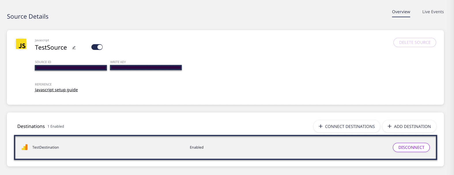 7. Your destination is now configured. You should now see the following source-destination connection in your dashboard: