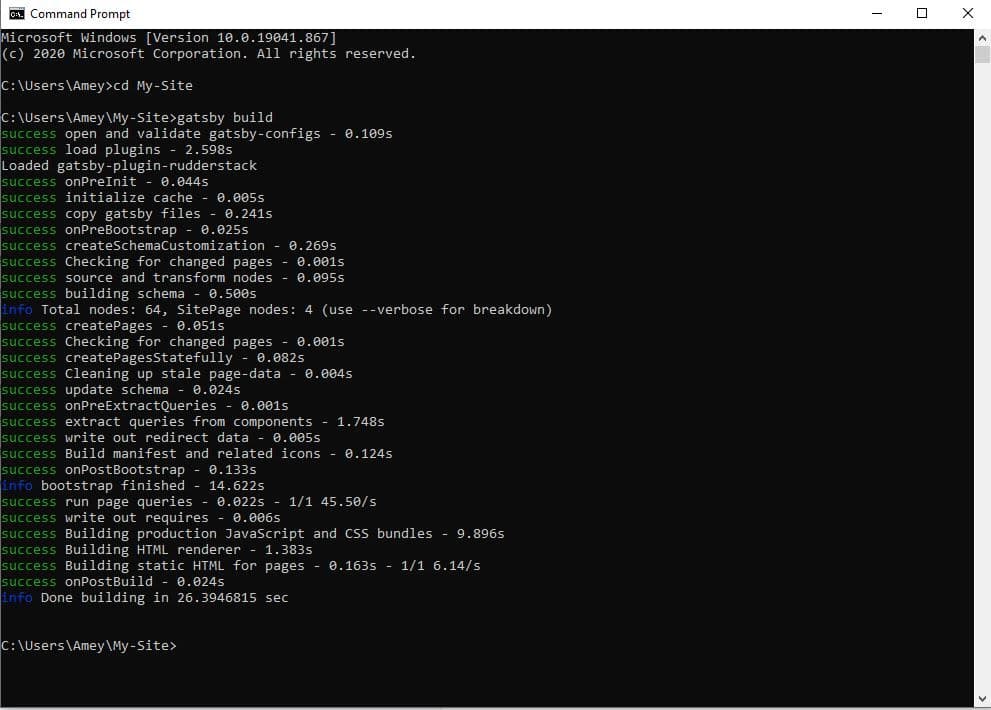 2. Run the command gatsby build if you are using a production environment. If you are using a development environment, run the command gatsby develop.