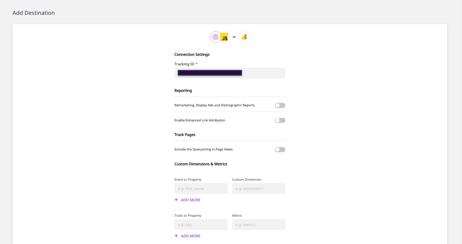 RudderStack supports over 80 tools to which you can reliably send your event data. For this tutorial, we will configure a Google Analytics destination in RudderStack. To configure this destination in RudderStack, follow these steps: