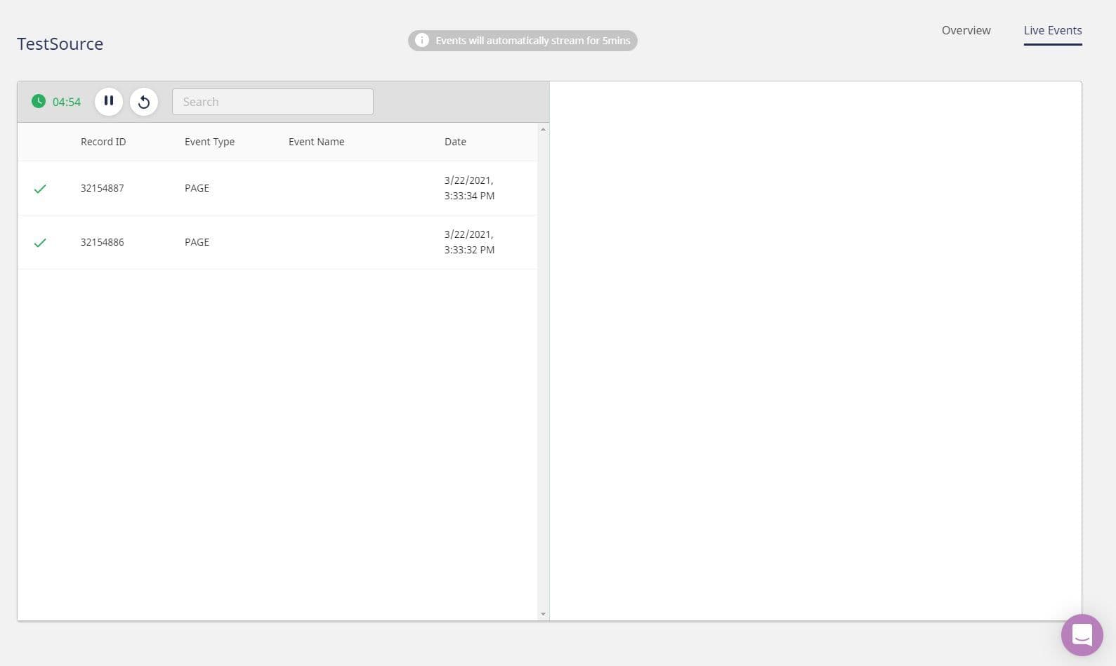 5. See if RudderStack can track the different page views by going to the Live Events section on the source dashboard page: