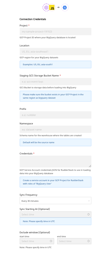 We will set up a Google BigQuery warehouse destination for this tutorial to route all the events from our Gatsby website. As mentioned above, set up a BigQuery project with the required permissions for the service account by following our doc.
