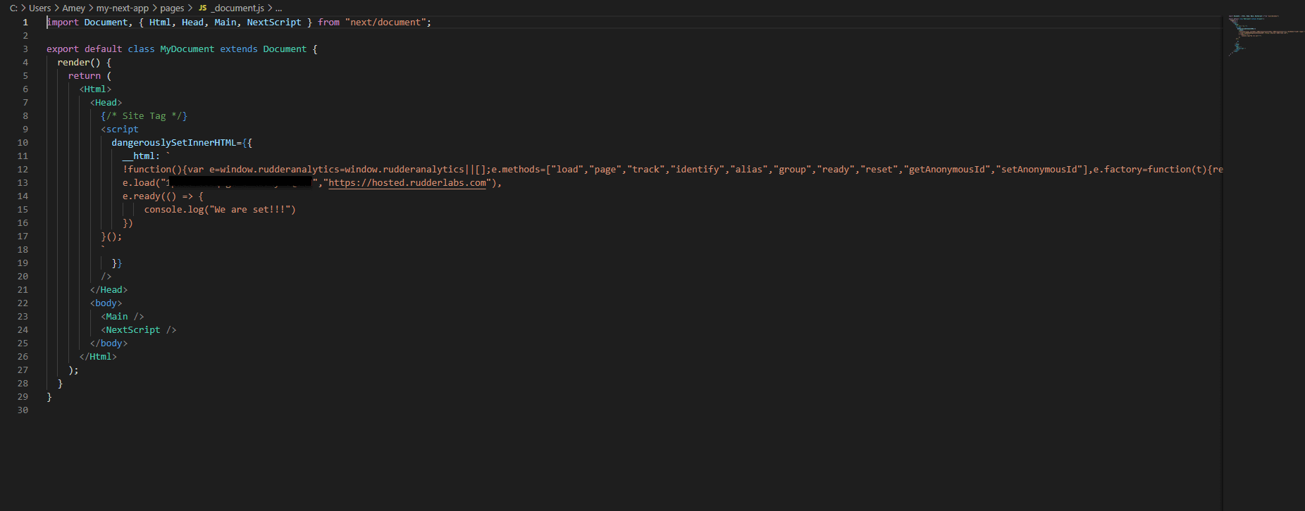 1. Create a new _document.js file in your app’s pages folder, as shown: