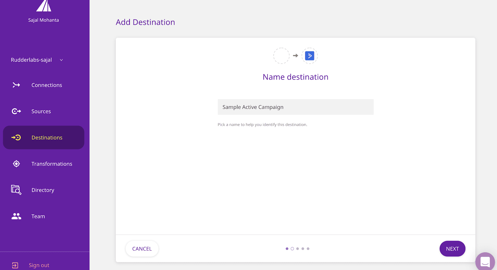 - Step 3: Enter the desired name for your destination and click on Next.