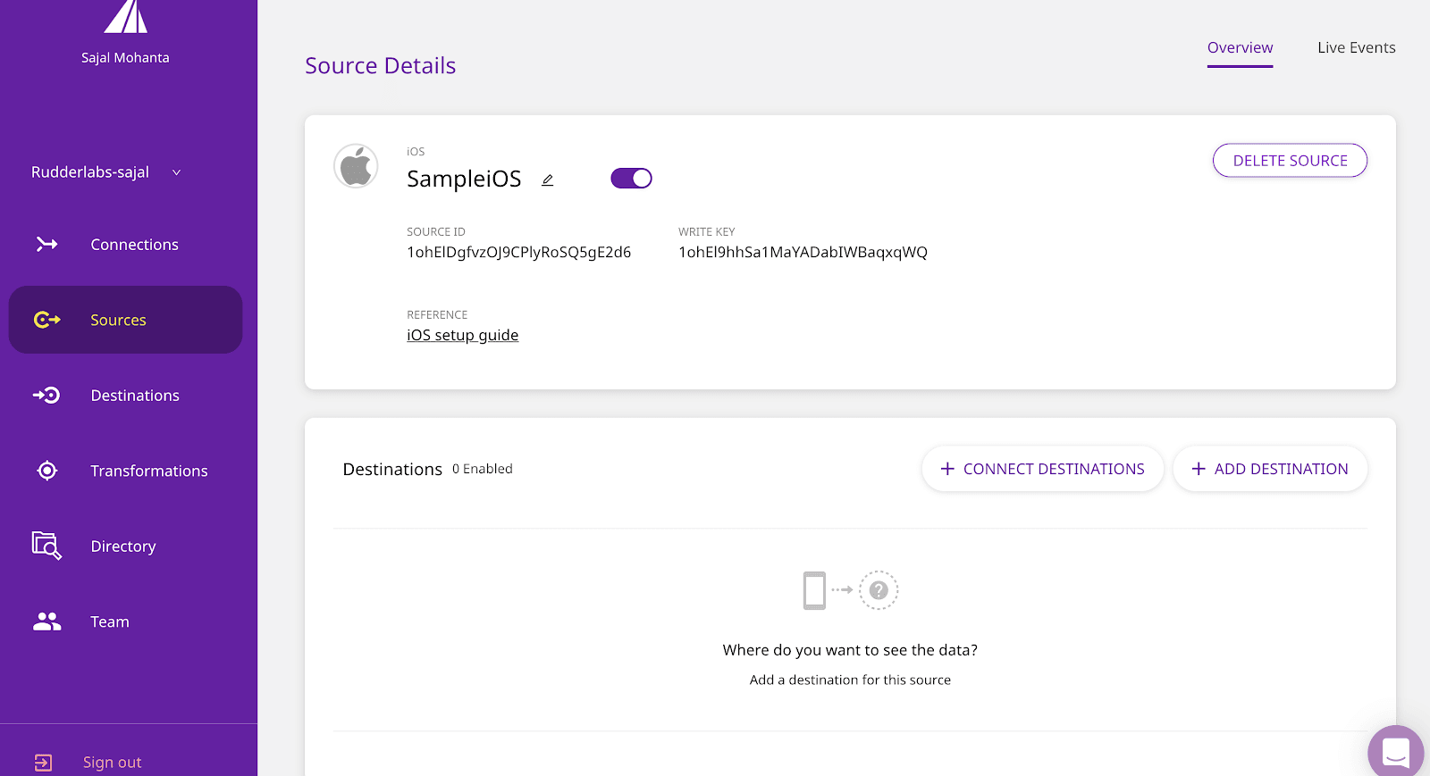 Note: If you don’t have a source configured in RudderStack from where you would like to send the data to the destination, skip the following section and move to Adding a New Source.